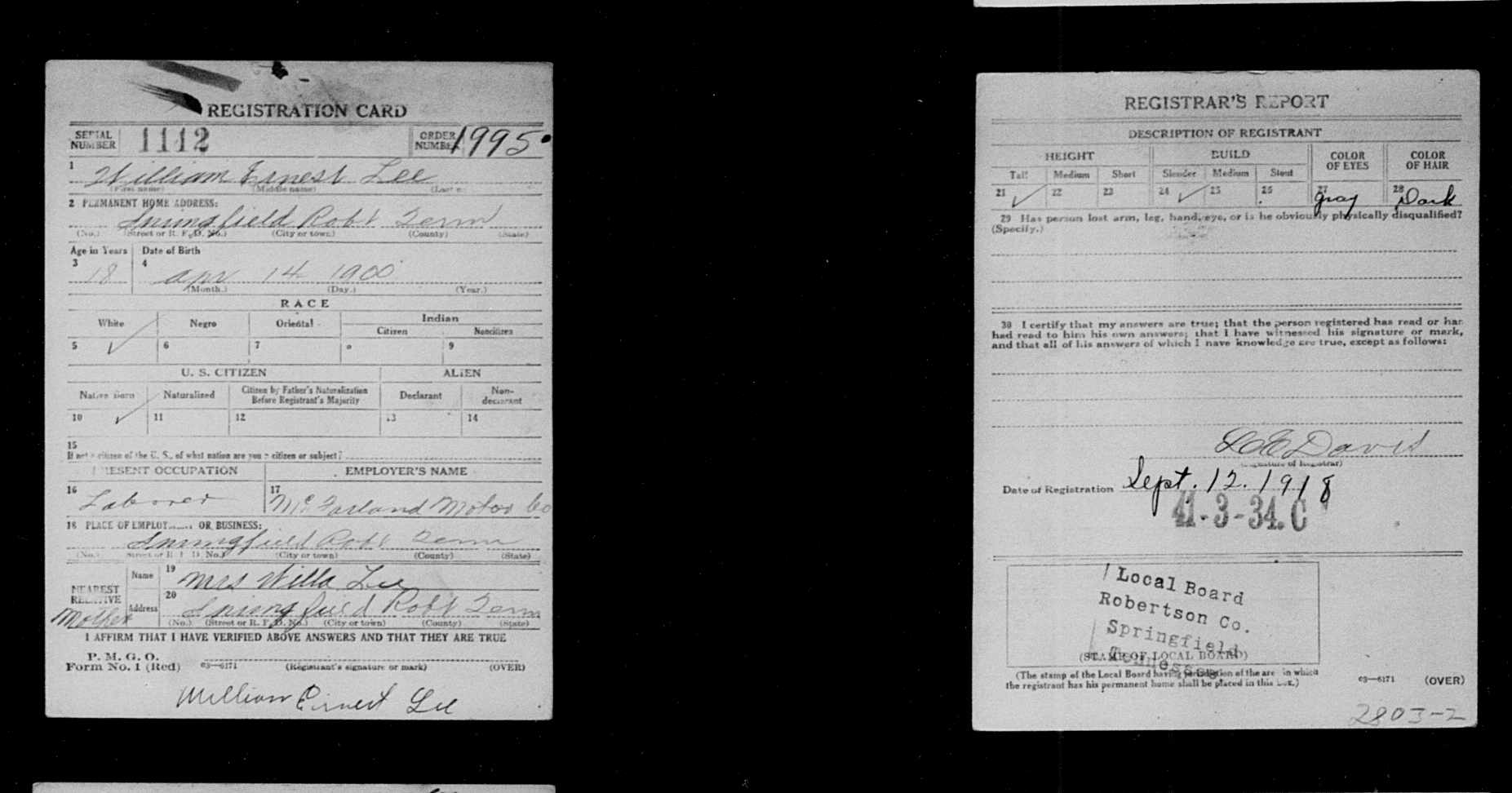 The birth date says June 24, 1897 and his age is 20. Both cannot be correct (card completed on September 12, 1918).