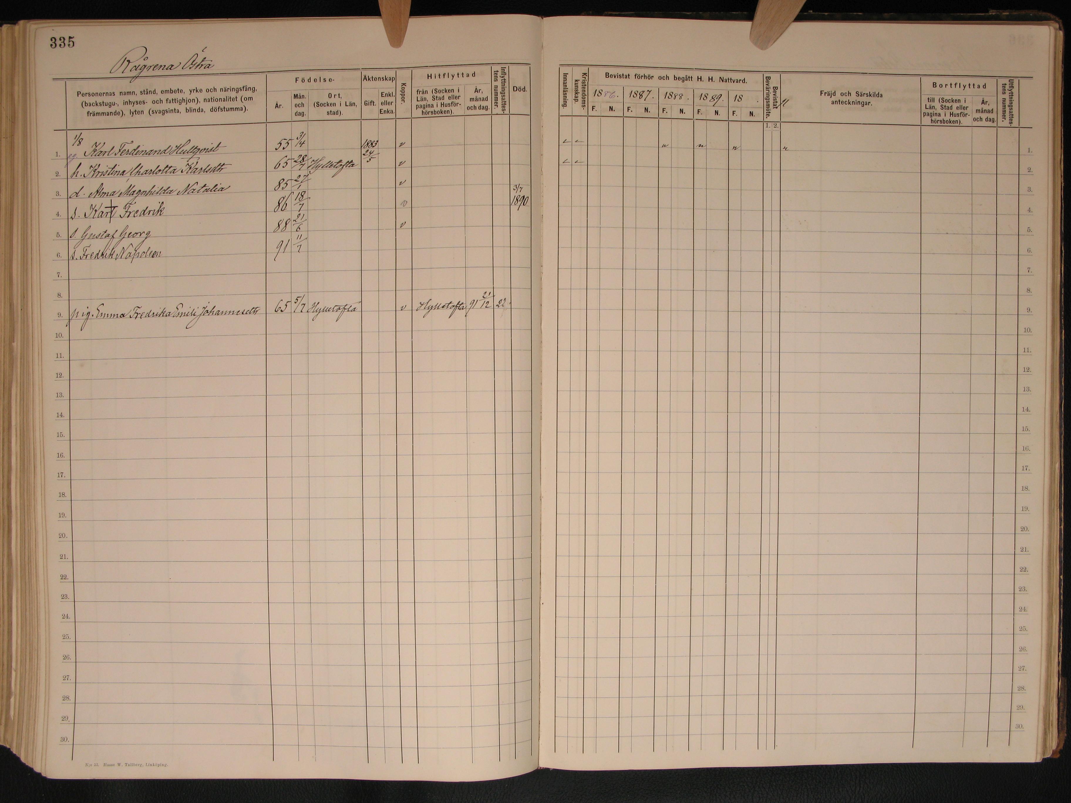 7863. “Sweden Household Examination Books,” Bringetofta AI 17, 1886 - 1890, Rågrena Östra, Bringetofta, Jönköpings, Småland, Sweden, 335.