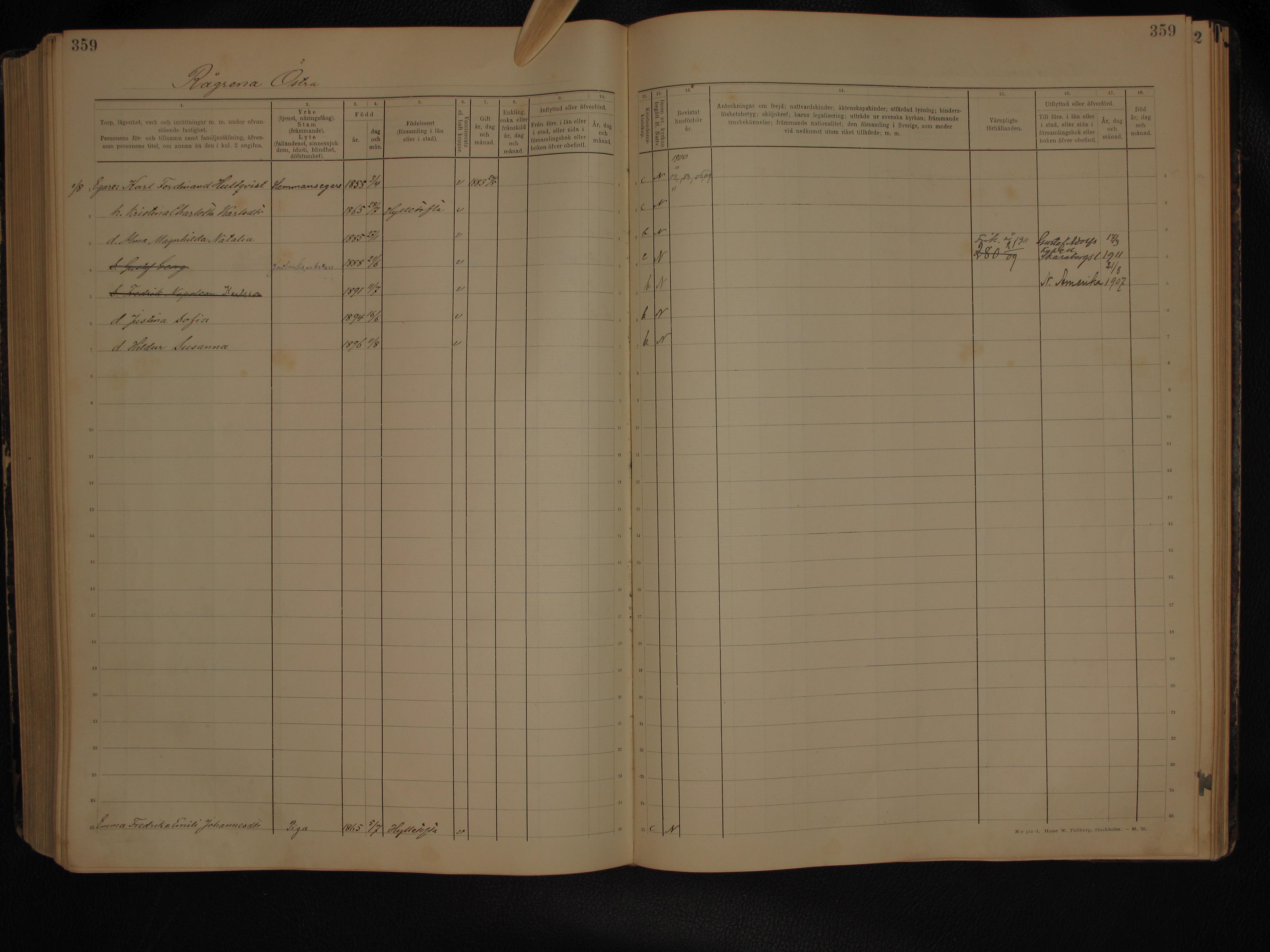 7864. “Sweden Household Examination Books,” Bringetofta AIIa 1, 1900 - 1912, Rågrena Östra, Bringetofta, Jönköpings, Småland, Sweden, 359.
