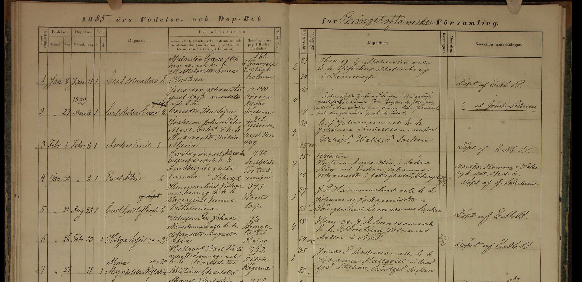 7884. Karl Fredrik Hultqvist, “Sweden Baptisms, 1611-1920,” February 11, 1885, Bredsätra, Kalmar, Sweden, https://familysearch.org/ark:/61903/1:1:F27T-KSM.