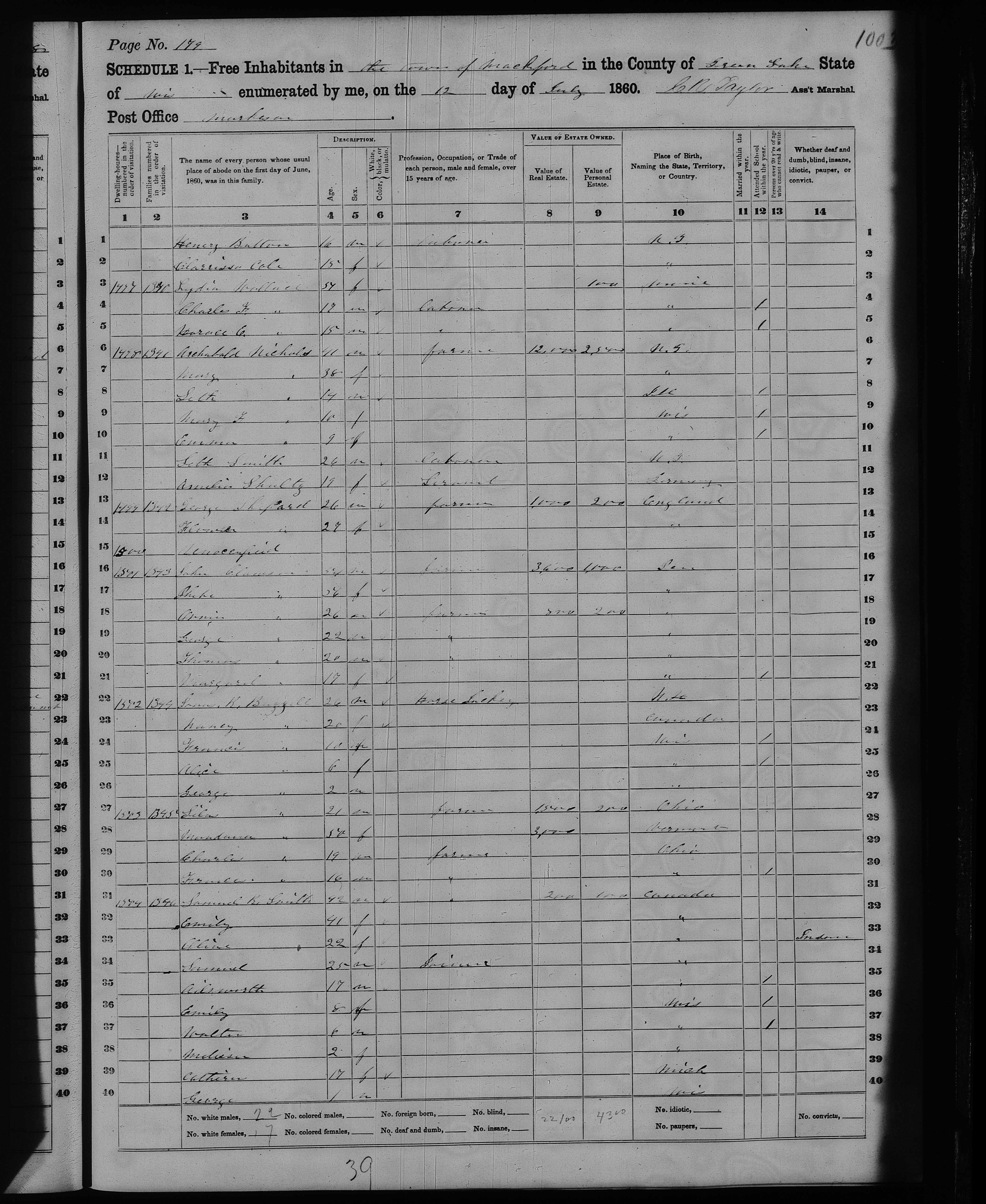 7915. “United States Census,” 1860, WI, Green Lake, Mackford, 179, M653, 805410, 215, Bureau of the Census, US Dept. of Commerce, United States of America, July 12, 1860, C R Taylor.