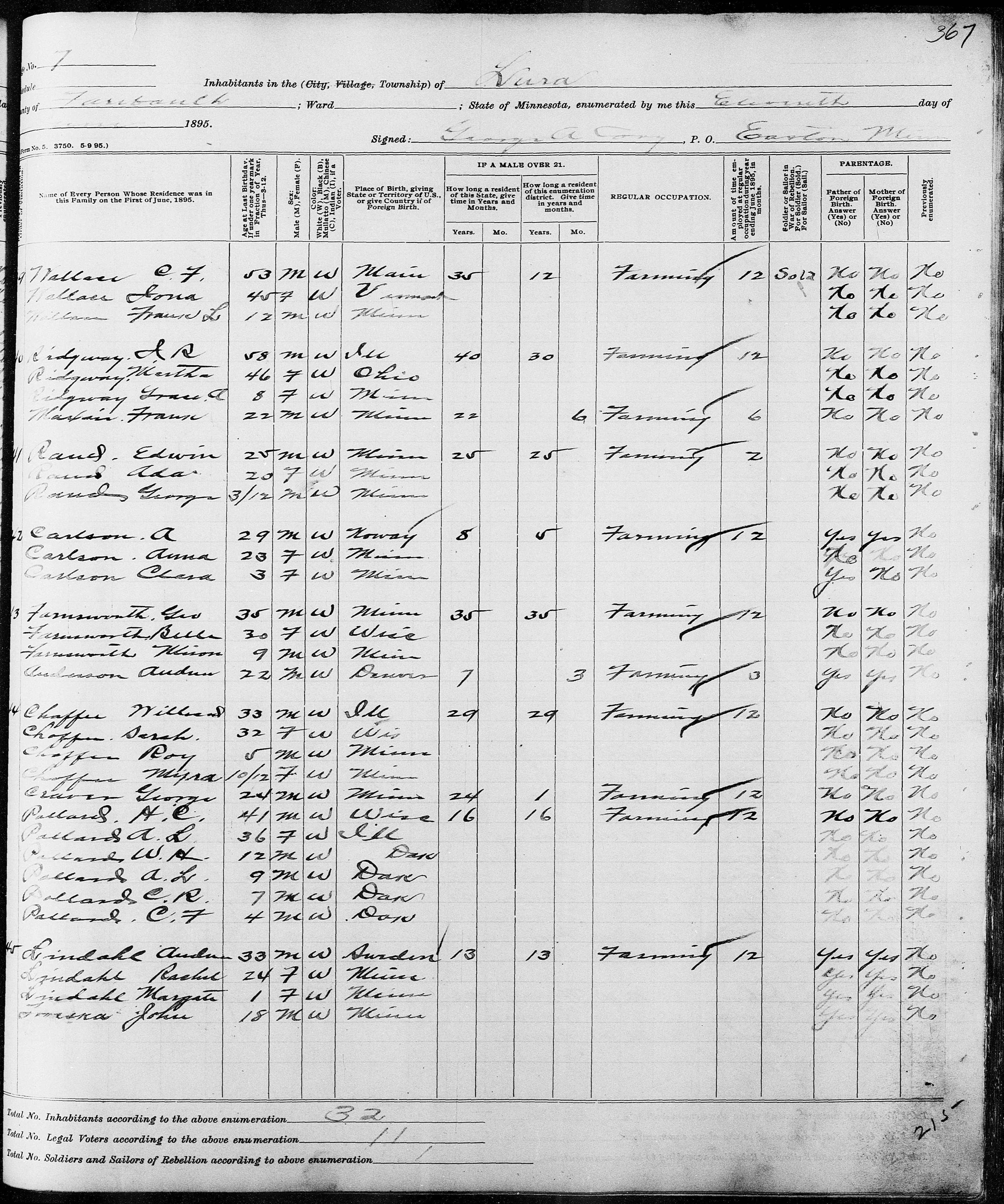 7917. “Minnesota State Census,” 1895, MN, Faribault, Lura, Mime Lake, 7, 565770, June 11, 1895, George A Cory.