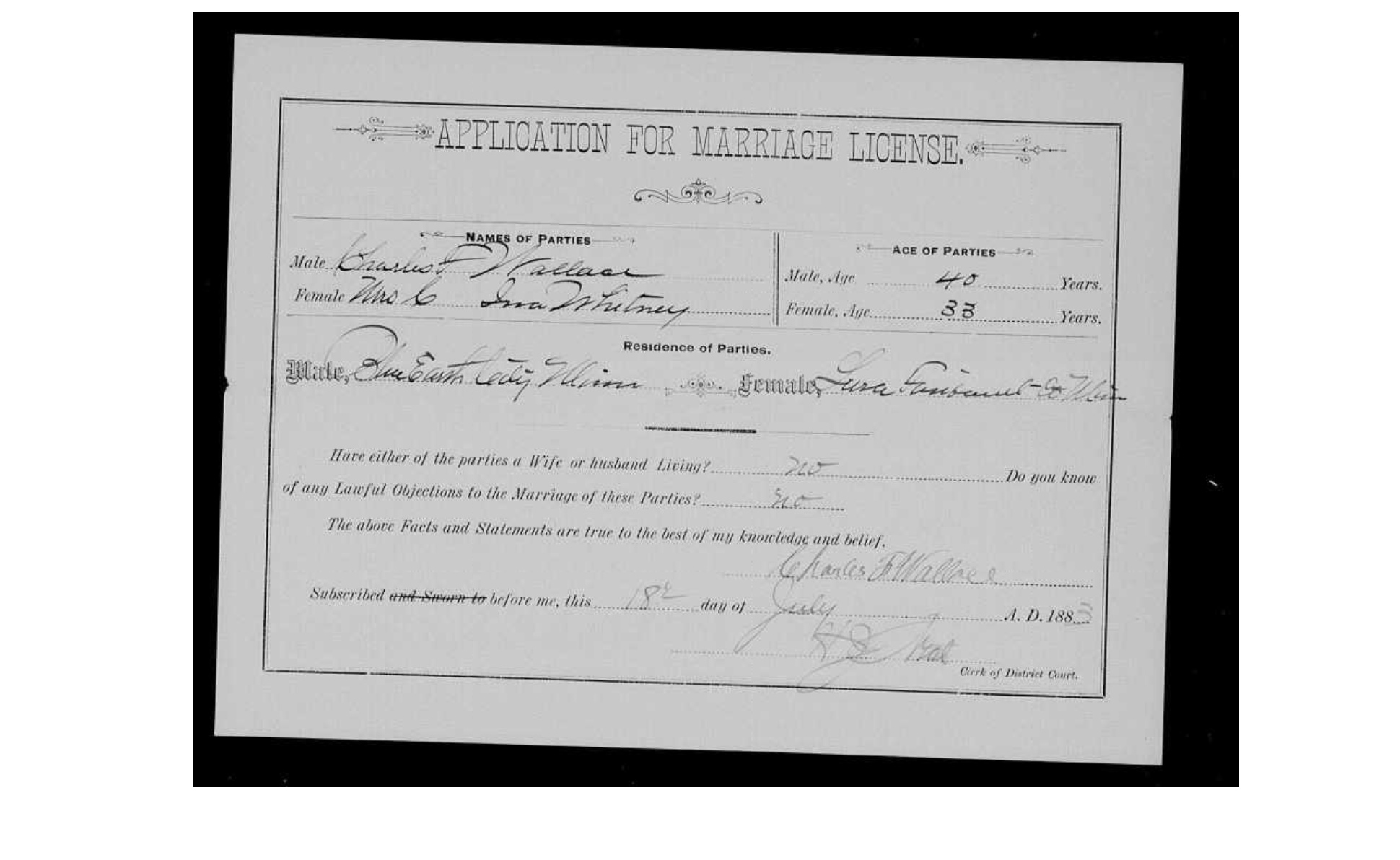 Files (2): CharlesFWallace_L_InaWhitney_MarriageCert, CharlesFWallace_C_InaWhitney_MarriageApp