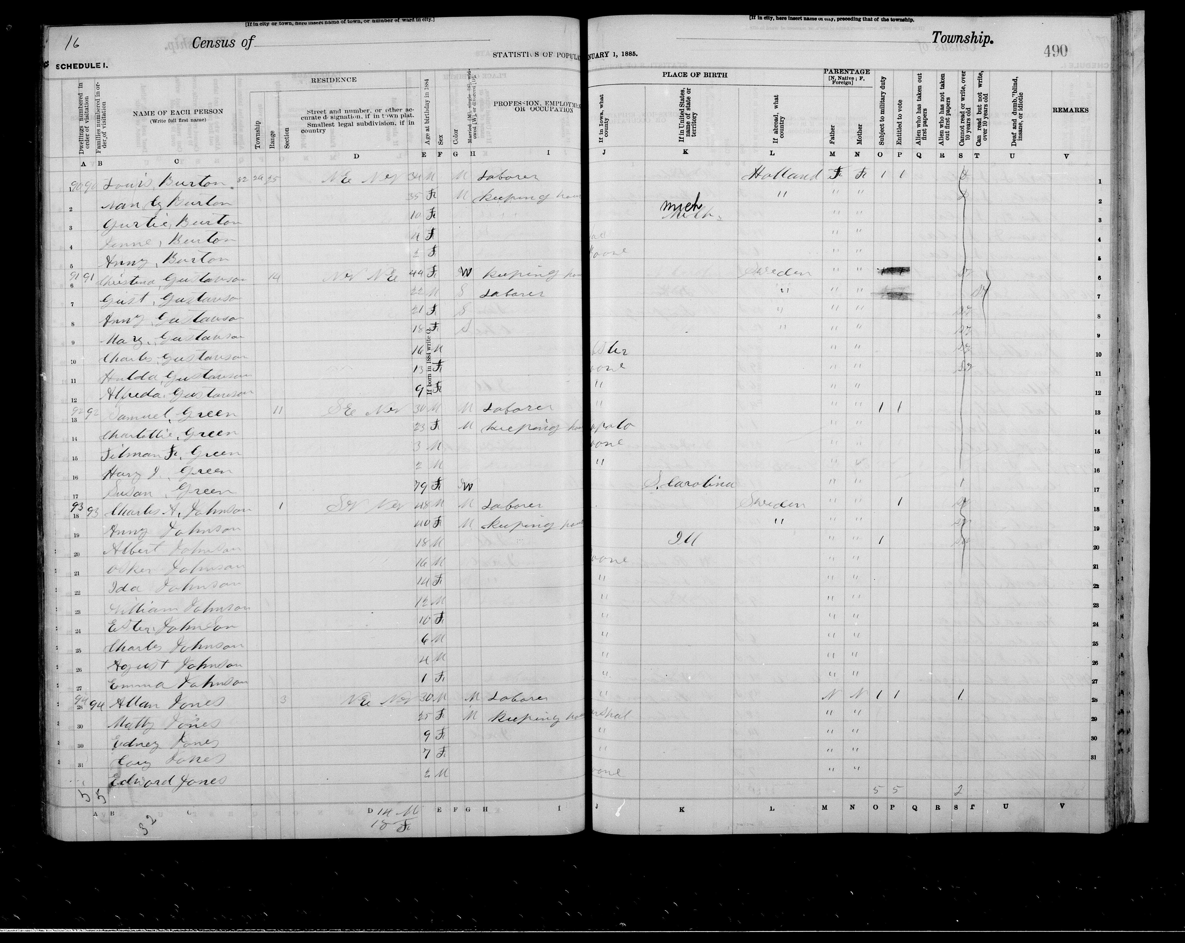 8025. “Iowa State Census,” 1885, IA, Boone County, Douglas, 16, IA1885, 1021443, 490, 458, State Historical Society of Iowa.