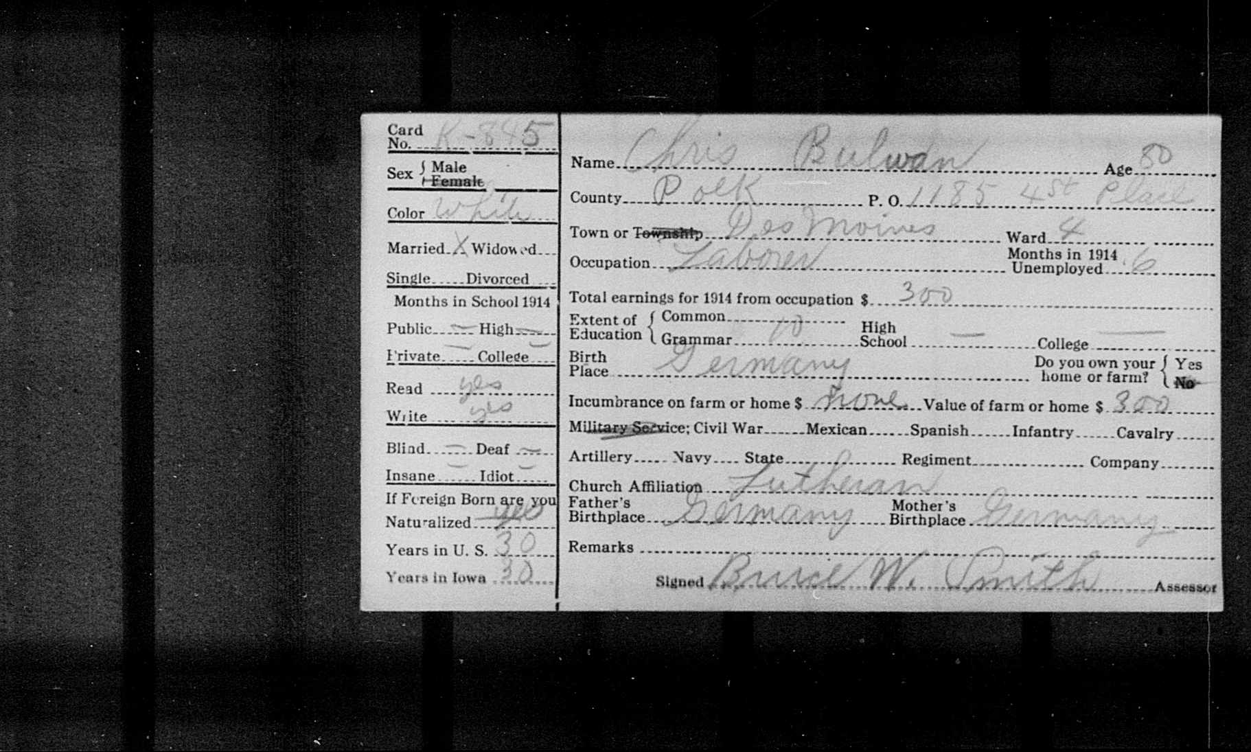8061. “Iowa State Census,” 1915, IA, Polk, Des Moines, Ward 4, K-845, Iowa State Historical Department.
