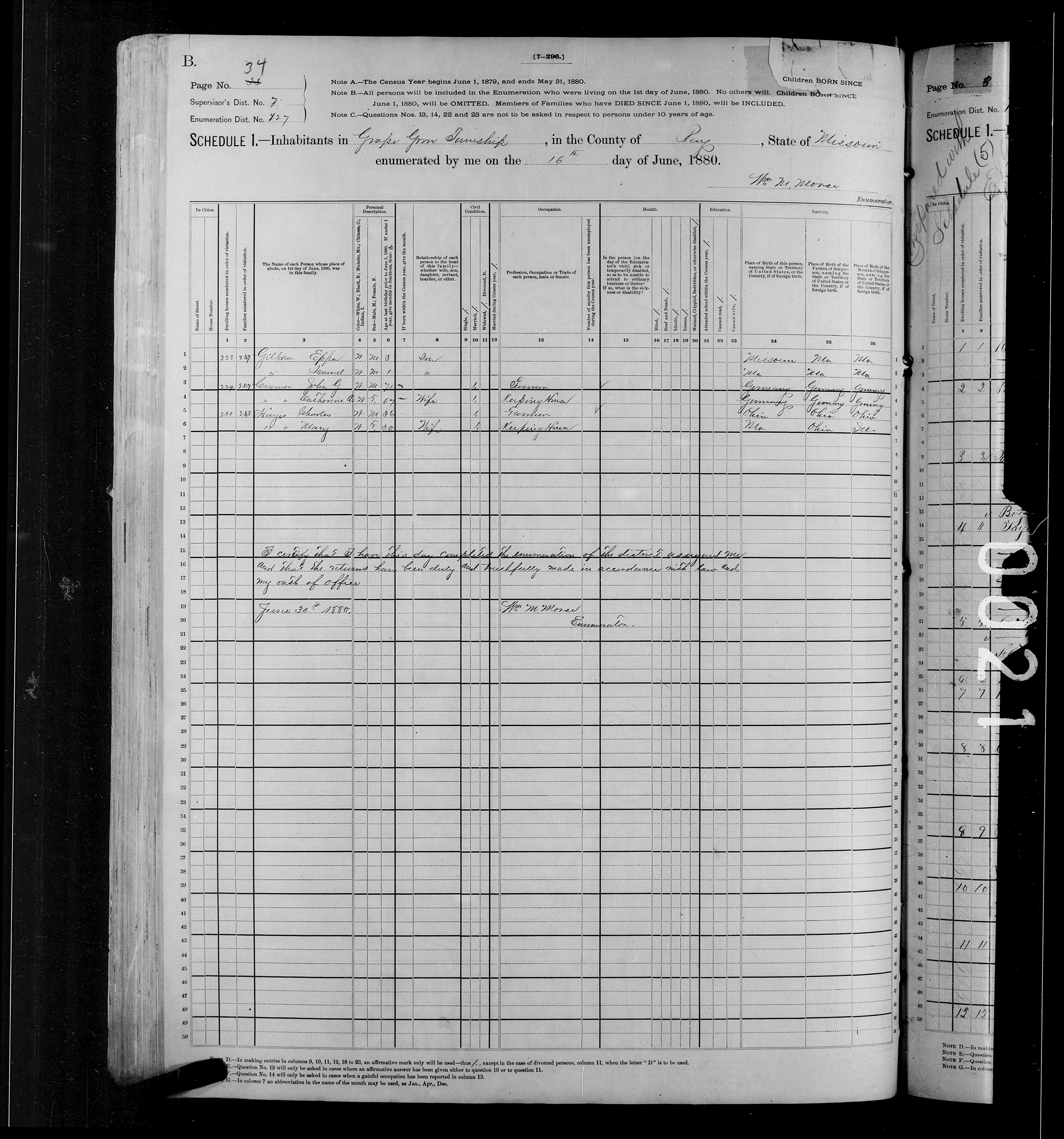 8188. “United States Census,” 1880, MO, Ray County, Grape Grove, 260A-260B, 7, 127, T9, 1254713, 33-34, 24, Bureau of the Census, US Dept. of Commerce, United States of America, June 6, 1880, Wm M Morse.