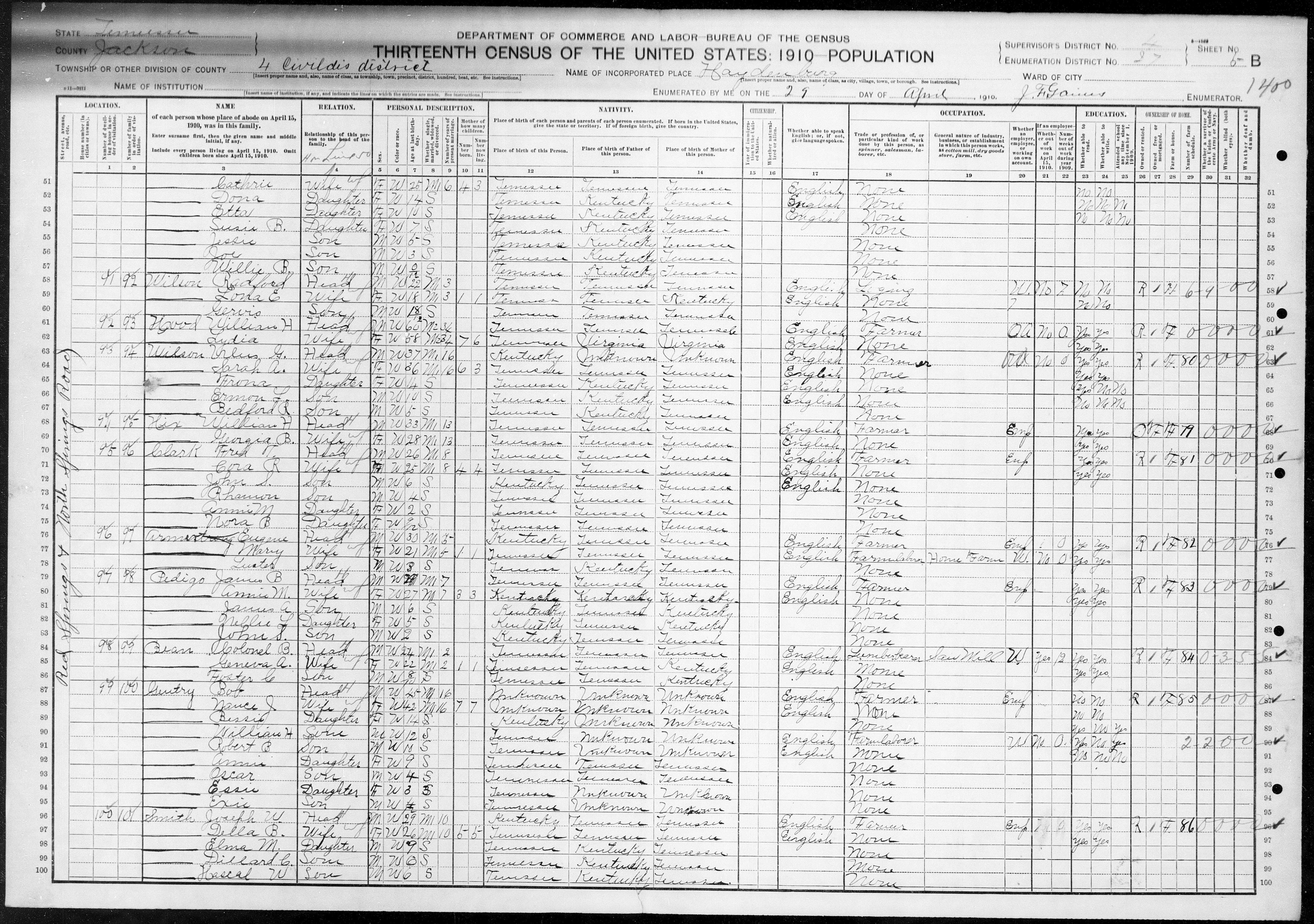 Files (2): 1910 TN Jackson County Haydenburg Dist 4 p5B, 1910 TN Jackson County Haydenburg Dist 4 p6A