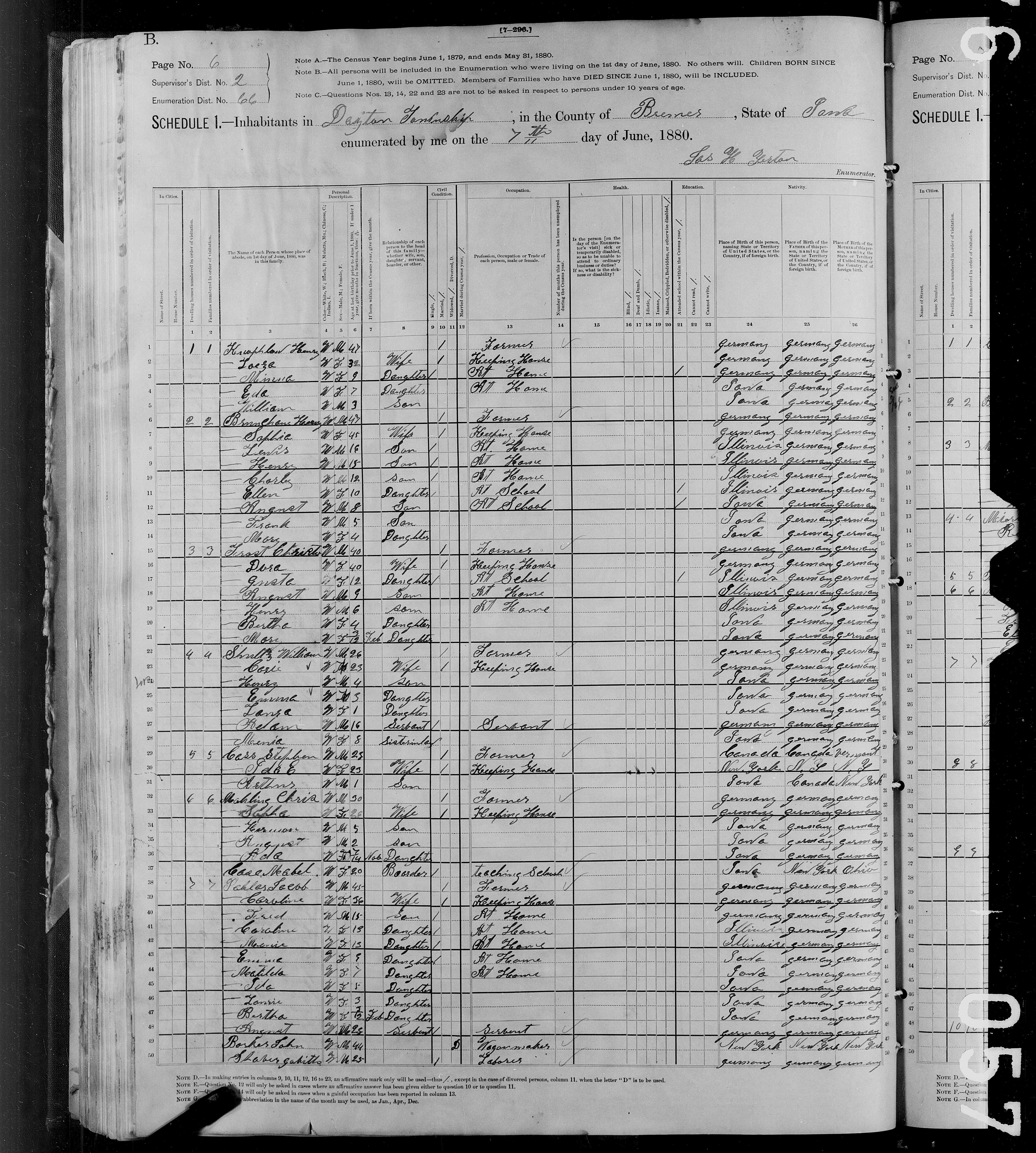8595. “United States Census,” 1880, IA, Bremer, Dayton, 6B, 2, 66, T9, 1254328, 237, 562, 10th Decennial Census Office, Bureau of the Census, US Dept. of Commerce, United States of America, June 7, 1880, Jas H Gerton.
