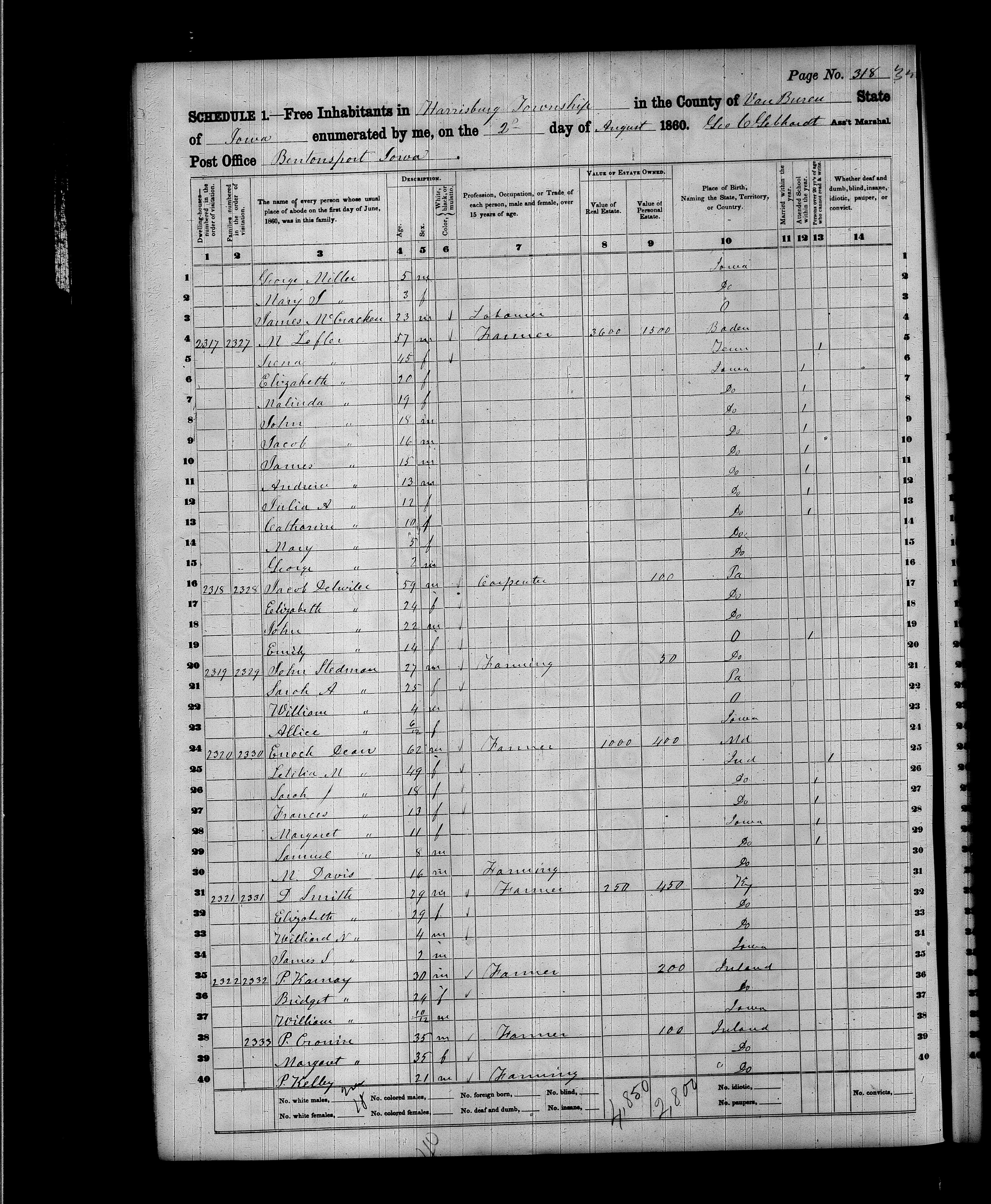 File: 1860 IA Van Buren County Harrisburg p318