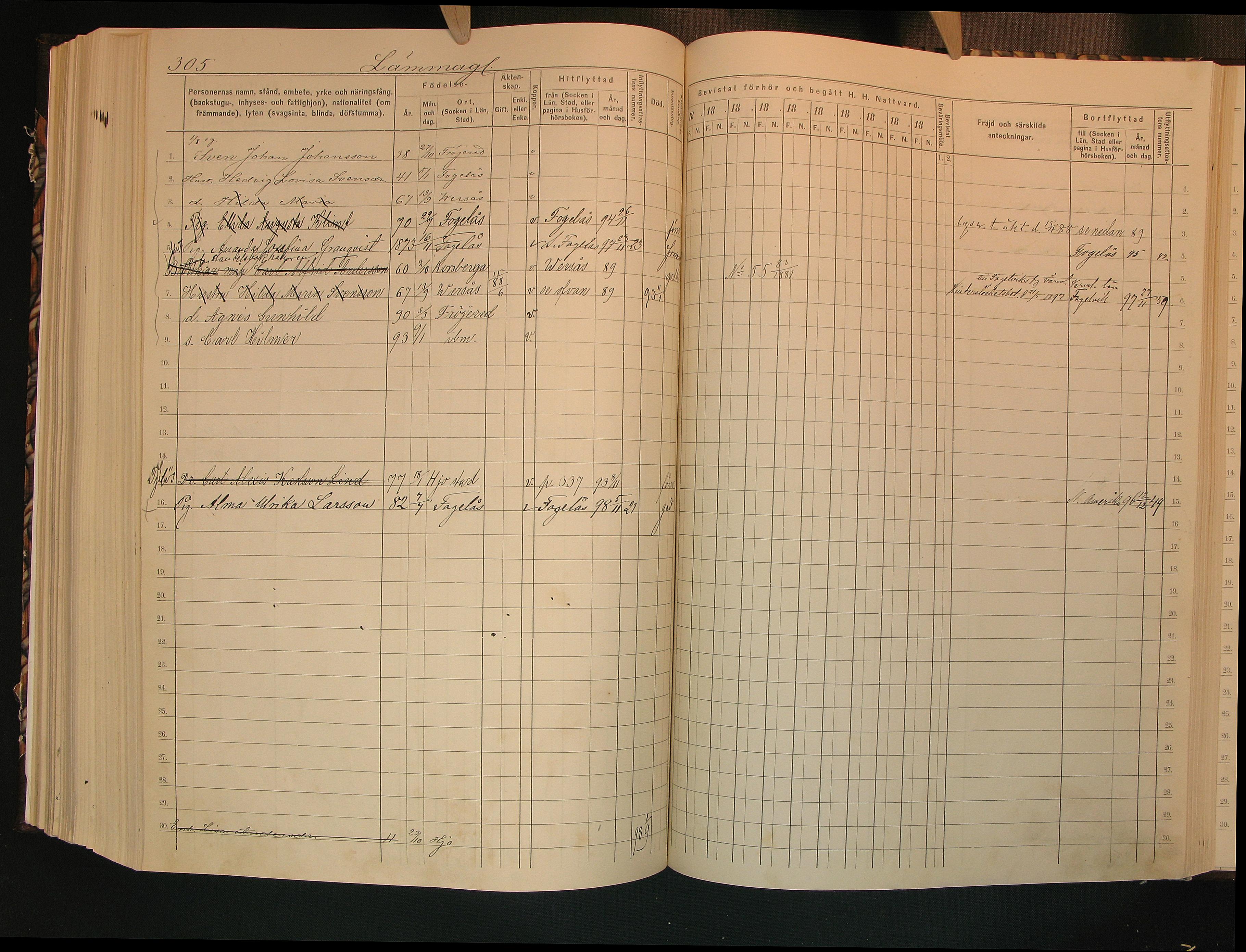 8823. “Sweden Household Examination Books,” 1884-1899, Fröjered AI 11, 1884-1899, Fröjered Parish, Skaraborgs, Västergötland, Sweden, Lämmagården, 305, 313.