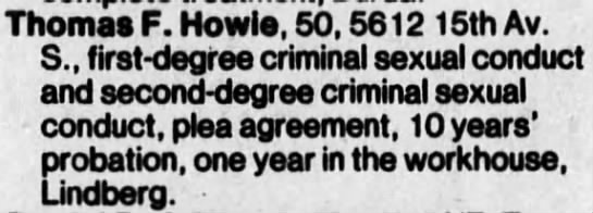 10678. “Law changed, sex case dropped ,” Thomas Fisher Howie, Argus-Leader, Sioux Falls, SD, November 9, 1985, 21.